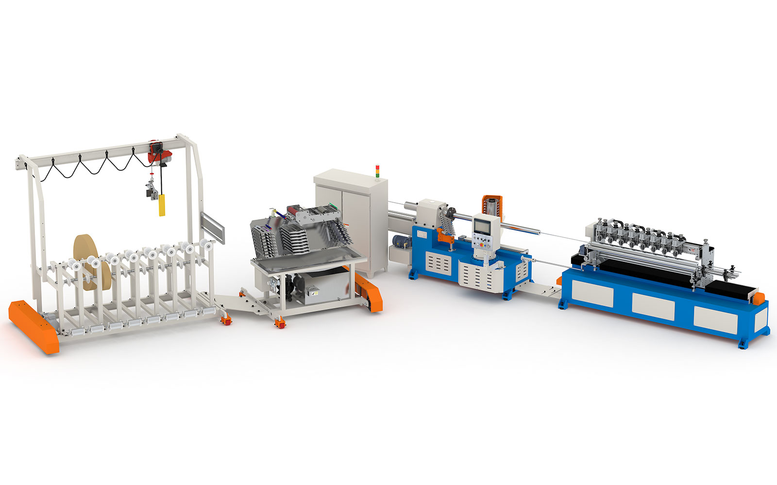 生產(chǎn)螺旋型紙管從涂膠、卷繞、到按要求切割一次完成。